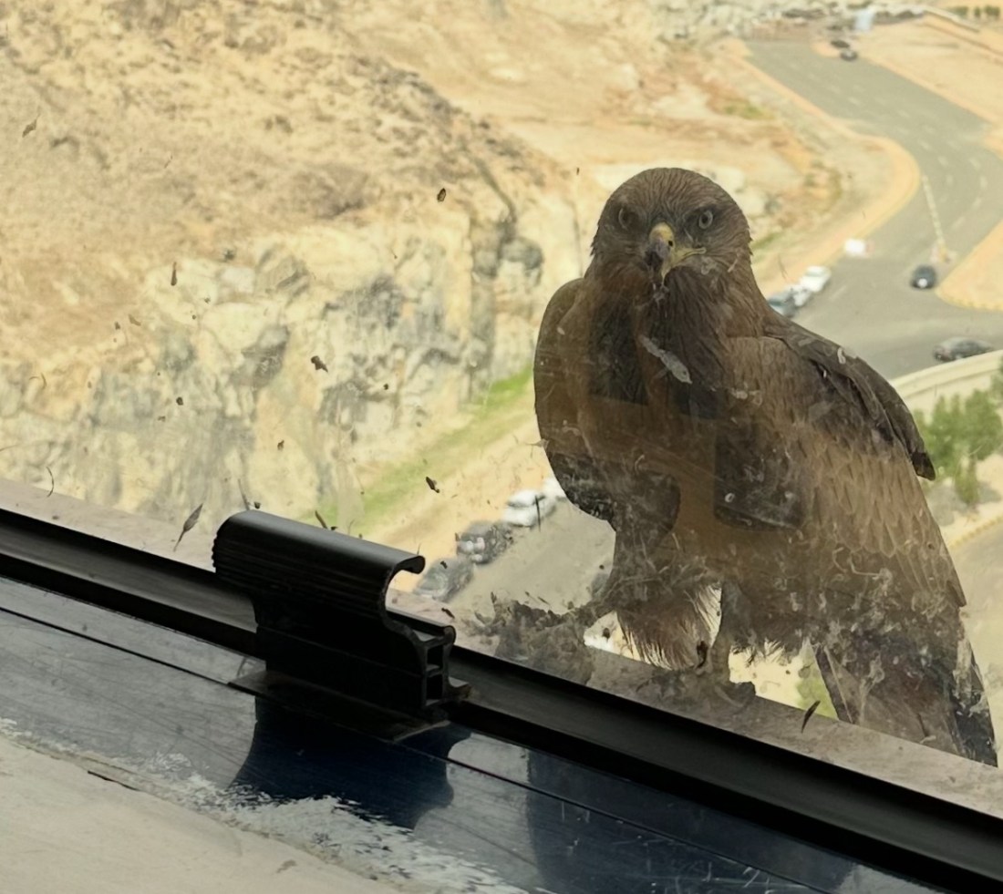 دخلت مكتبي الجديد فوجدت حماد يجلس متأنقا ينتظر مني أن أحيل إليه التعليمات عن طريقة إدارتي للعمل. ذهبت مباشرة لأتفقد الإطلالة ولأفتح منفذًا تخرج منه رائحة العطر الكثيف الذي رشه قبل قليل، شدني على الإفريز خلف النافذة حبوب عدس نيئة وعظمة تشبه عظم الصدر لطائر صغير وبقايا ملتصقة تحولت مع الغبار والحرارة والوقت إلى مادة صمغية سوداء اللون، اقتربت بوجهي ودققت متفحصًا فبدا لي ما يشبه بقايا الشعر أو الريش ملتصقا بها، قد أفهم كل شيء لكني لم أفهم ماذا يأتي بحبوب العدس إلى الطابق الثالث عشر رفعت سماعة الهاتف وطلبت من الخدمات أن يرسلوا عاملًا معه مكنسة كهربائية وممسحة ومطهر، حين حضر شرحت له أن يقلب المكنسة ليحولها من الشفط إلى النفخ ويطير بعيدًا كل هذه الأوساخ والبذور ثم دفعنا النافذة التي لم يتزحزح منها غير مساحة صغيرة سمحت بتمرير يده وسكب الماء والمطهر ودعك الإفريز وتنظيفه. أعددت قهوتي ثم نزلت إلى المدير التنفيذي في أول اجتماع لنا بعد إنشاء الإدارة لنتلقى المعتاد من القول في هذه الأحوال. عدت في منتصف الضحى وحين دخلت المكتب استوقفني منظر حدأة تقف على الإفريز وبمخلبها شيء تنهش منه، سحبت نفسي إلى الوراء ببطء حتى لا تطير وذهبت إلى مديري وسألته هل تعرف الحدأة ؟ قال نعم ، جاتك؟ قلت إيه وش دراك فأجاب كنت أعمل قديمًا في هذه الجهة وكانت تأتي إلى نافذتي وأتأملها من قرب، تصرفاتها عجيبة. سألته: ما تطير إذا قربت؟ قال لا  وباستغراب متحذلق استفهمت: عمياء ؟ قال لا لكن النوافذ في الواجهة مثل المرايا تعكس فما تدري عنك وضحك على وجهي الساذج الذي ظهرت عليه علامات الاستيعاب المتأخر.